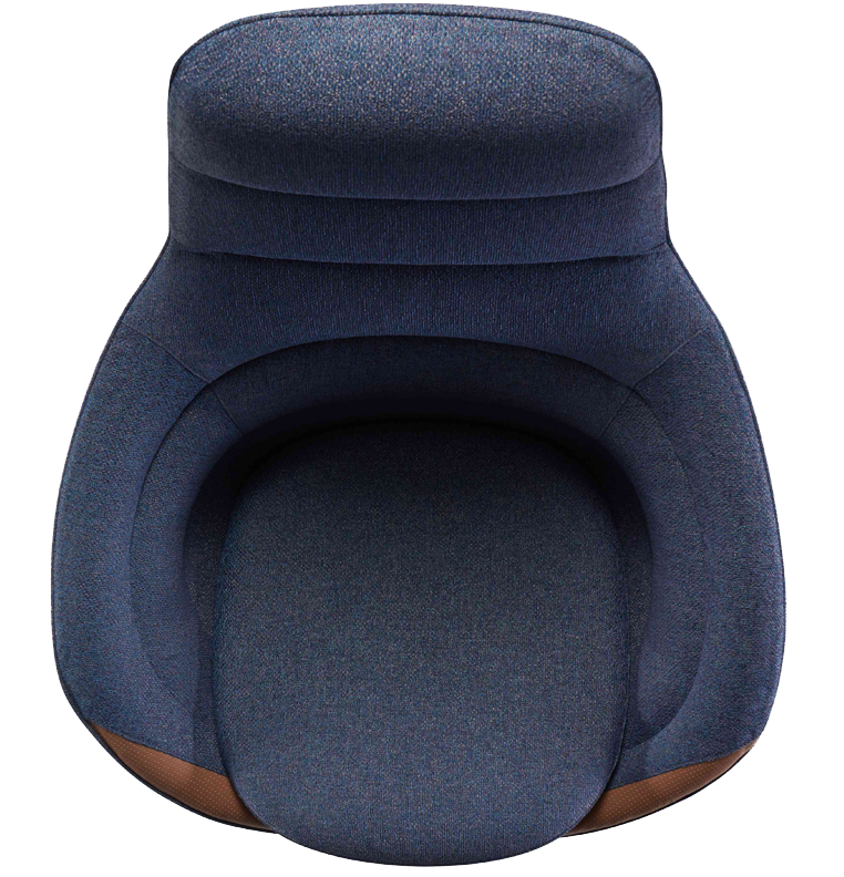 It is composed by three circular rings on the back, that they enwrap the pillow of the seat.