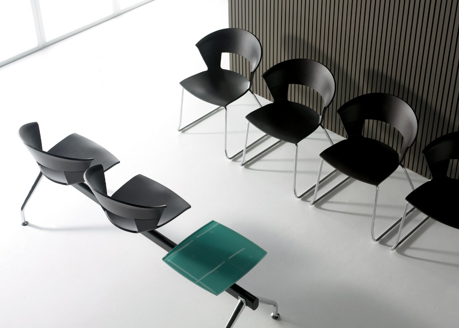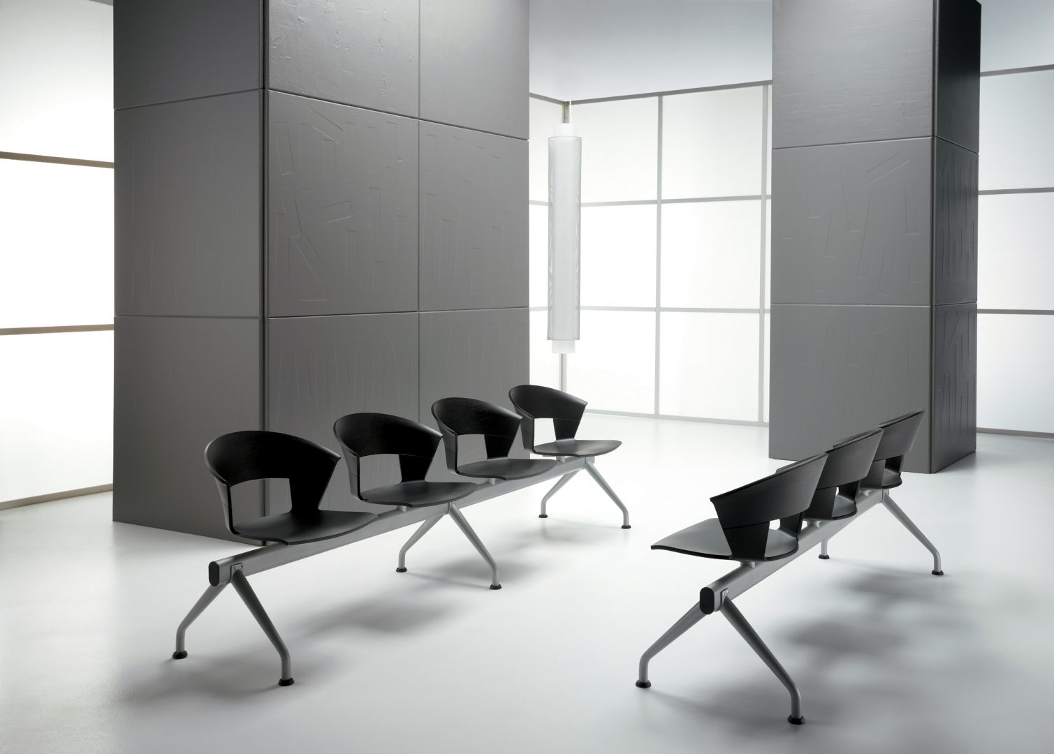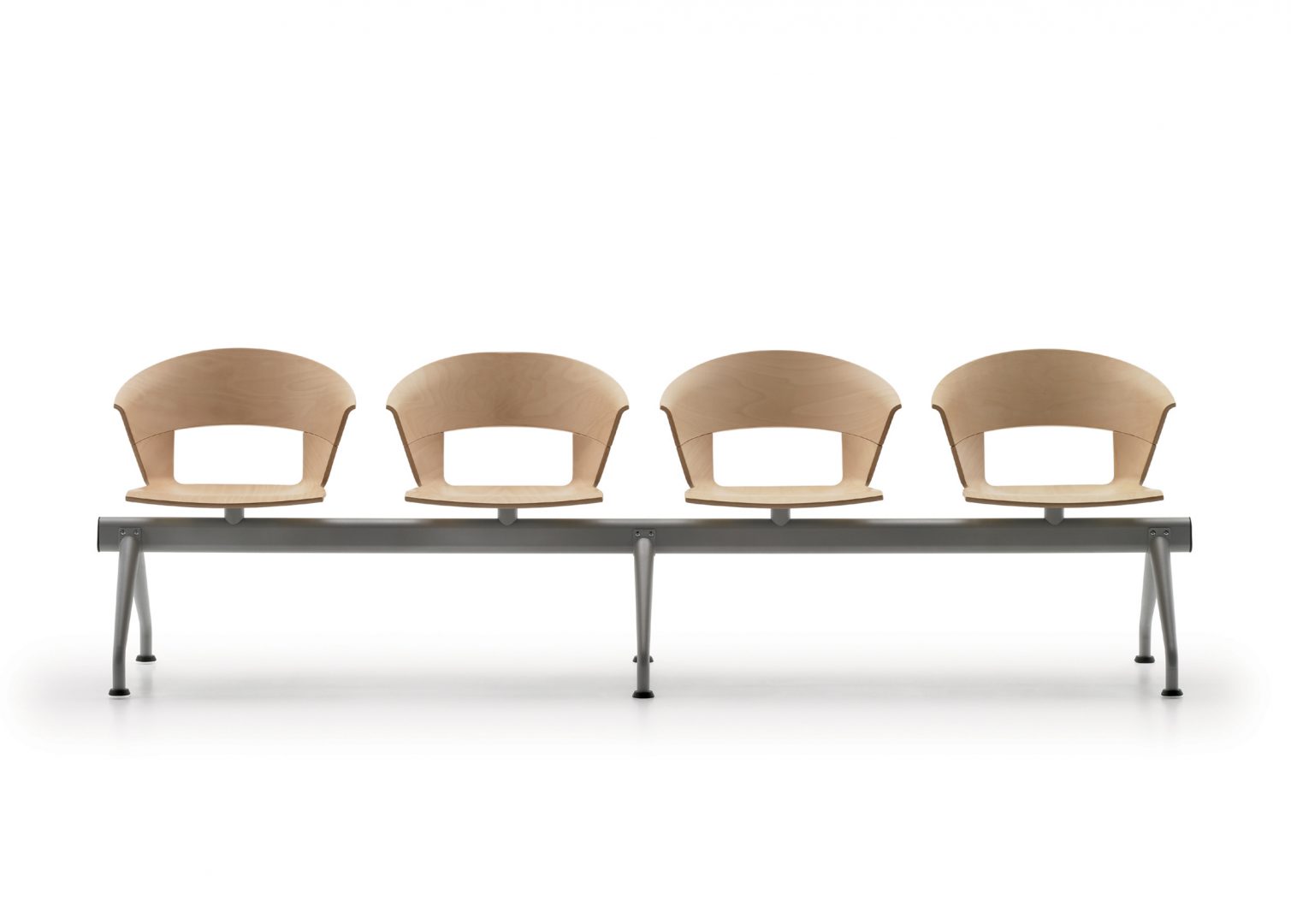 Basilissa è una seduta per ufficio e collettività, eseguita in legno multistrato curvato e formata da due pezzi, sedile e schienale. La struttura metallica è declinata in tutte le sue versioni.
