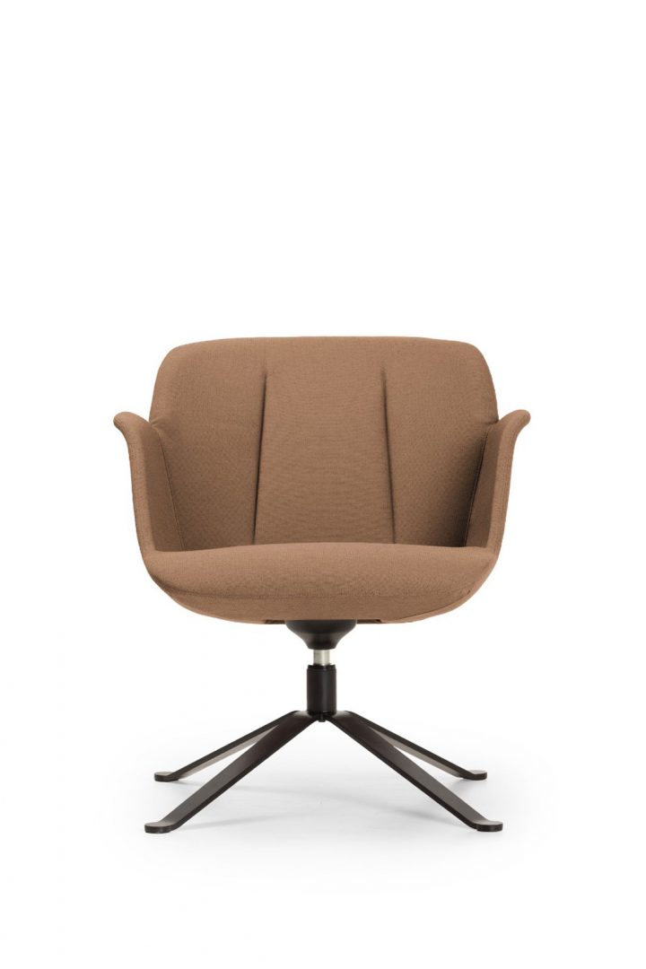 Hive represents the synthesis of the armchair in the executive, lounge, waiting and hospitality environment. The design is characterized by the pronounced lines of the compact armrest and the stitching that shapes the backrest in a vertical direction. It is available with a solid wood 4 legs base or rocking version and with a 4-spoke steel swivel base.