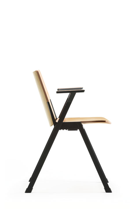 Seats community’s programme with back seat and rest in multislumped layer or in plastic. Its holding structure, legs and armrest are in aluminium die casting.