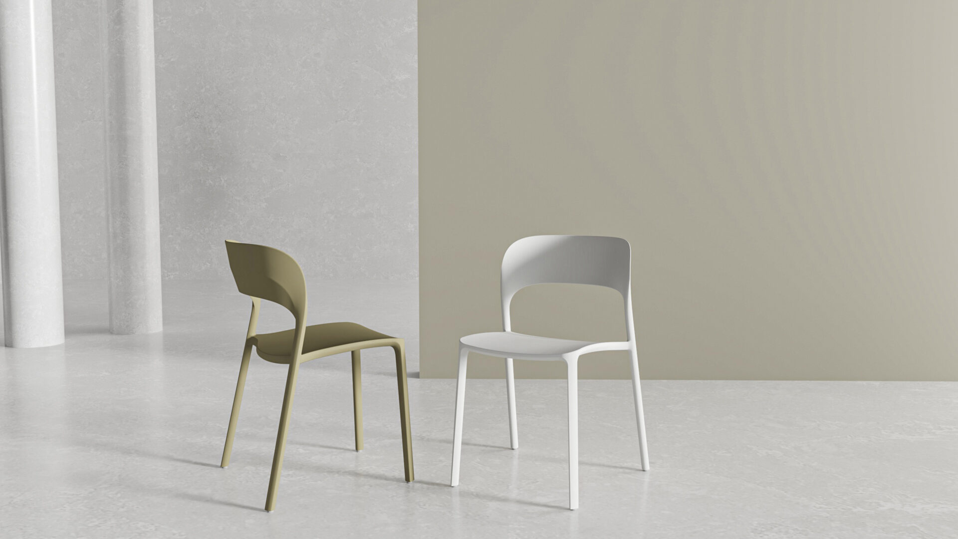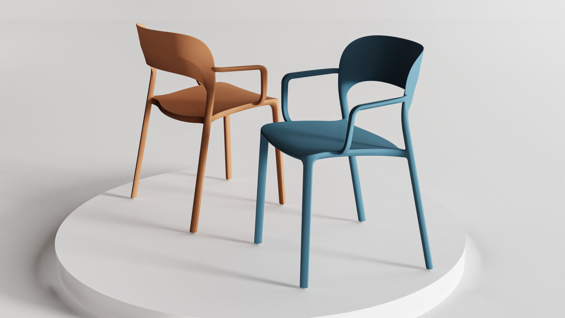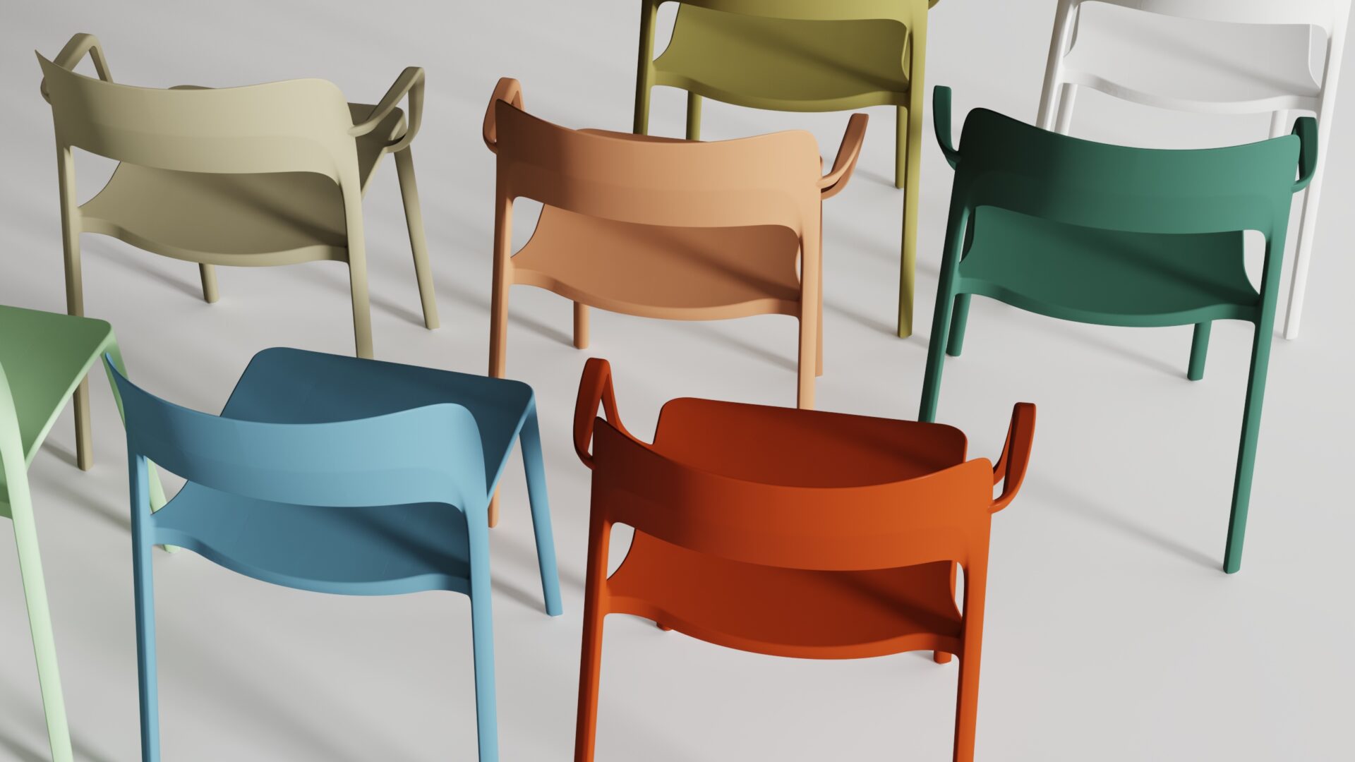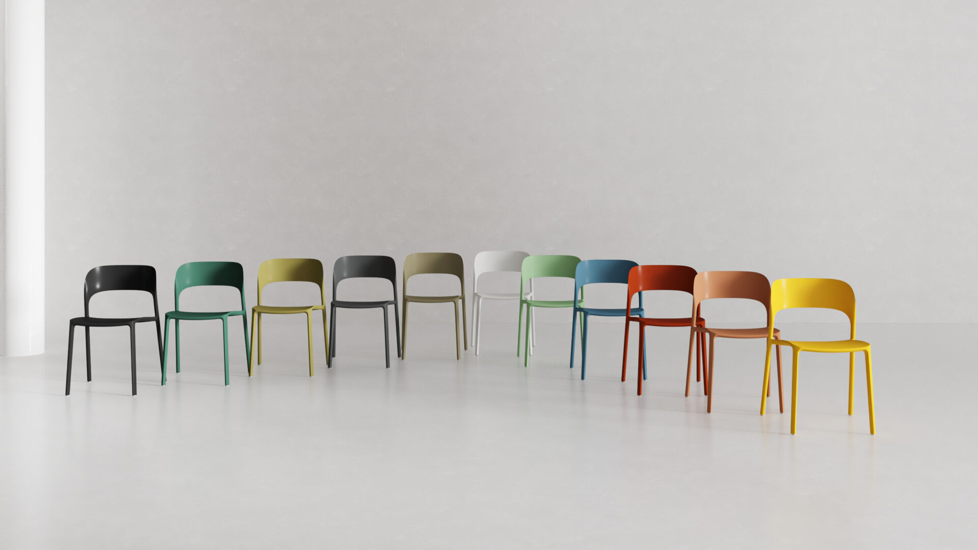 Available with and without arms in 12 different colors, is mounded in polypropylene reinforced gas.