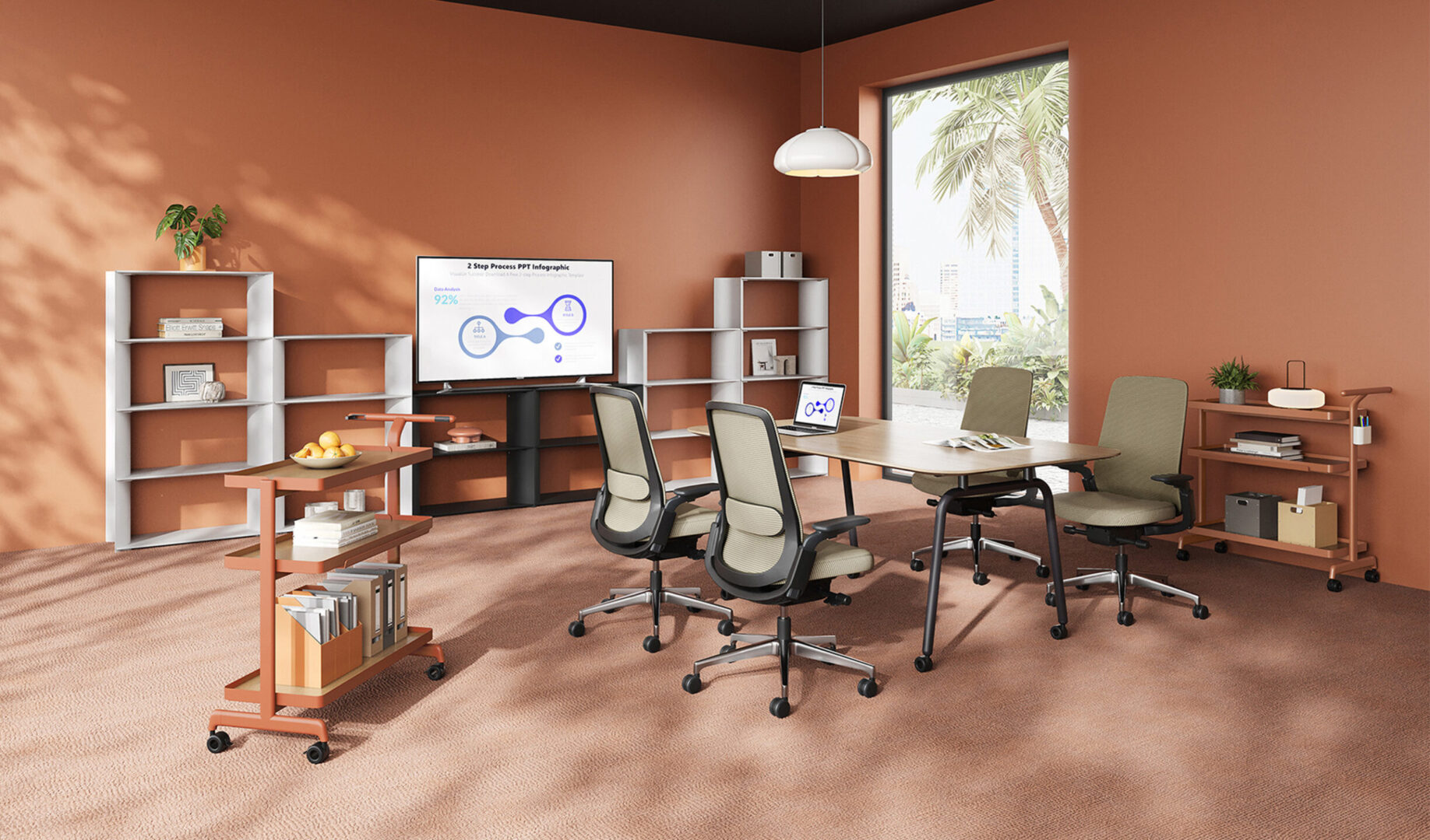 Available in a range of finishes and colors, MixBlock can adapt to different interior styles—from more expressive solutions like the vibrant orange version to more neutral, professional settings.