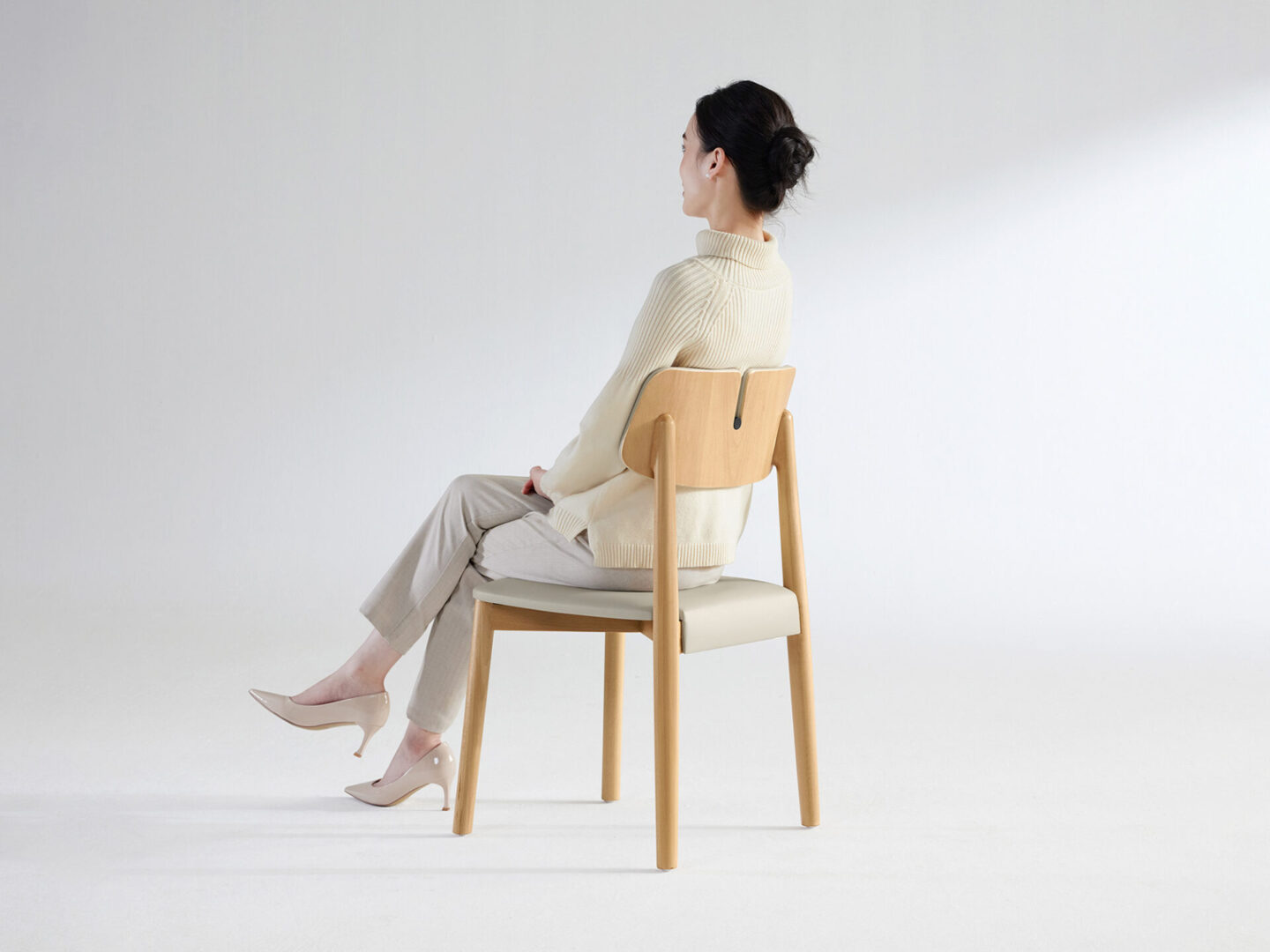 The backrest follows the natural curve of the spine, providing full support, while soft padding ensures lasting comfort. In moments of conversation, fatigue fades and comfort surrounds you. The cushion provides a gentle, enveloping support that eases pressure and encourages relaxed posture. Each moment spent seated feels effortless and comfortable. Crafted with mortise and tenon joints, the frame is solid and reliable, built to endure daily life and stand the test of time.