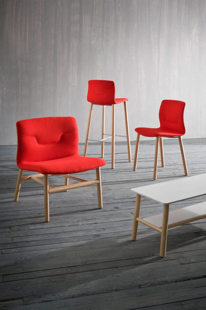 Mono polypropylene body shell with elastomer insert which allows back rest's bending at lumbar support's level.