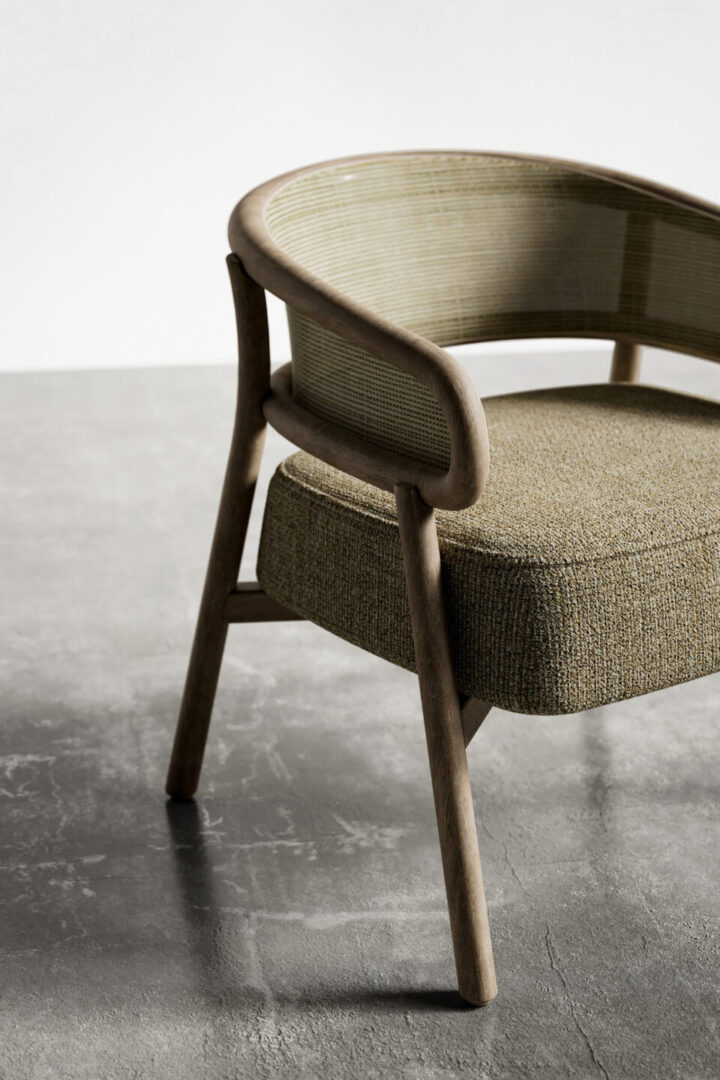 The collection includes a chair, an armchair, and a lounge chair, and highlights the craftsmanship of wood and the Made in Italy quality that has always defined Potocco’s furnishings.